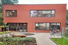 Das Kinder- und Familienzentrum Helsinkistraße freut sich seit August 2020 über sein neues Gebäude. In direkter Nachbarschaft der Oberschule Helsinkistraße und Pellens Park in Bremen Nord bietet der Neubau bis zu sechs Gruppen (Krippe und Elementar) Platz. Das 1.200 Quadratmeter große Gebäude ersetzt den bisher genutzten Mobilbau.