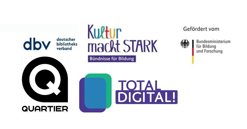 „Total Digital! Lesen und erzählen mit digitalen Medien“ ist ein Programm des Deutschen Bibliotheksverbands e.V., gefördert vom Bundesministerium für Bildung und Forschung im Rahmen von „Kultur macht stark. Bündnisse für Bildung“ des Bundesministeriums für Bildung und Forschung.
