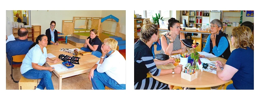 Eine weitere Aufgabe bestand darin, dass jede*r Mitarbeiter*in drei für ihn/sie wichtige Werte festlegt. Anschließend mussten sich die Teams auf drei gemeinsame Werte einigen. „Das war gar nicht so einfach. Es ergaben sich interessante zeitintensive Diskussionen. Ausgehandelt wurden beispielsweise Werte wie Gesundheit, Pädagogik, Gerechtigkeit.“, erklärt das Zentrumsteam.