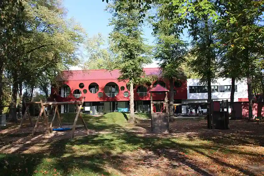 05.11.2018 - Am 19.10.2018 war es endlich soweit: Der Neubau des Kinder- und Familienzentrums Schwedenhaus wurde offiziell von Senatorin Dr. Claudia Bogedan, KiTa Bremen Geschäftsführer Wolfgang Bahlmann und der Leiterin vom Schwedenhaus Susanne Kortehaneberg eingeweiht. Großzügig und lichtdurchflutet, mit bunten Fenstern, runden Formen und schrägen Wänden – das ist das neue Schwedenhaus. „Es ist einfach großartig, dass der Standort mit dem besonderen Außengelände erhalten bleiben konnte“, betonte Frau Susanne Kortehaneberg bei ihrer Begrüßung der 40 anwesenden Gäste. Das alte Schwedenhaus – ein typisches Pippi-Langstrumpf-Haus mit unverkennbarem roten Anstrich – war sehr beliebt. Mit dem Neubau wurde das Motiv auf eine sehr originelle Art neu interpretiert.