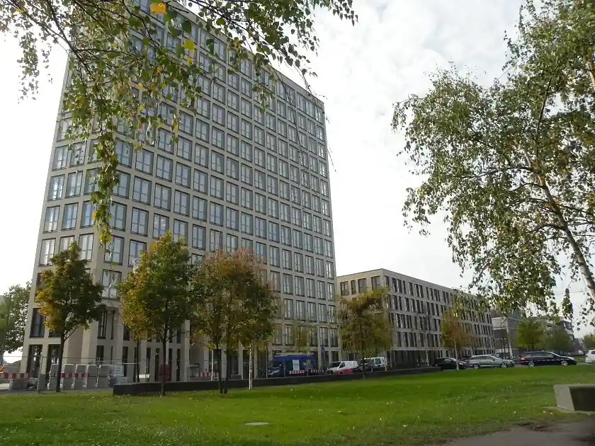 Das neue Gebäude der KiTa Bremen-Zentrale zeichnet sich durch eine hohe Energieeffizienz aus. Durch die zentrale Lage in der Bremer Überseestadt (Die neue Postanschrift lautet: Auf der Muggenburg 5, 28217 Bremen) erreichen Besucher*innen Bömers Spitze mit Bus und Bahn innerhalb von fünf Minuten aus der Bremer Innenstadt. KiTa Bremen ist einer von zwei Hauptmietern im dreizehngeschossigen Bürogebäude, dessen Bau zwei Jahre dauerte. Der Büroabschnitt KiTa Bremens erstreckt sich über vier Etagen im Sockel des Gebäudes. Hier sind künftig Geschäftsführung, Fachberatung, Regionalleitungen, Personal- und Finanzwesen wie auch Infrastrukturdienste und die Interessenvertretungen anzutreffen.