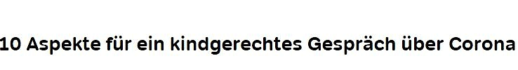 Um Kindern die Möglichkeit zu geben, Beobachtungen einzuordnen und Sorgen zu teilen, ist es wichtig mit ihnen über Corona zu sprechen. Da viele Fragen rund um das Virus noch offen sind, kann ein Gespräch nicht immer alle Ängste nehmen. Ziel sollte es sein, Kinder einen geschützten Raum zur Auseinandersetzung mit dem Thema zu geben.