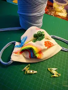 - Werden Sie gemeinsam kreativ und lassen Sie Kindern den Stoff von Gesichtsmasken einfärben, bemalen oder verzieren.