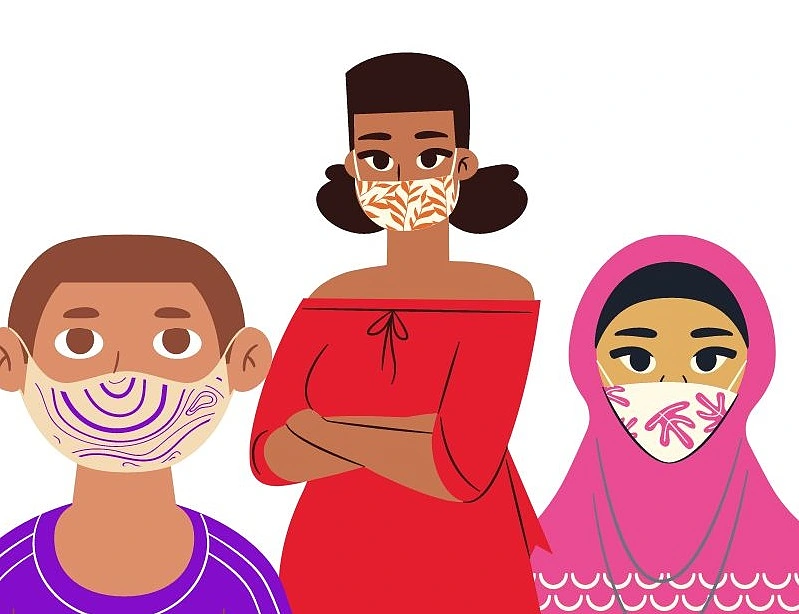 Foto: Verzierter Mund-Nasen-Schutz im Kinder- und Familienzentrum Farge-Rekum; ©KiTa Bremen - Eigenbetrieb der Stadtgemeinde Bremen.