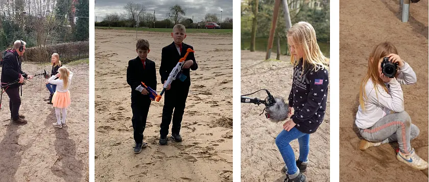 Eine Gruppe drehte, bearbeitet und schnitt einen eigenen Film. Dabei waren die Kinder nicht nur an und vor der Kamera tätig, sondern haben auch verschiedene Geräusche aufgenommen und später in den Film eingefügt.