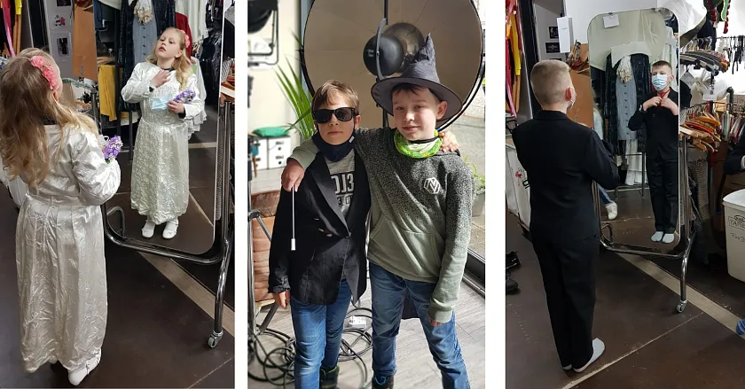 Während der Projektwoche erhielten die Kinder Einblick hinter die Kulissen des Theater Bremens. Sie erkundeten den Fundus des Theaters und wurden unter professioneller Anleitung selber aktiv. In drei Gruppen arbeiteten sie an eigenen Formaten:
