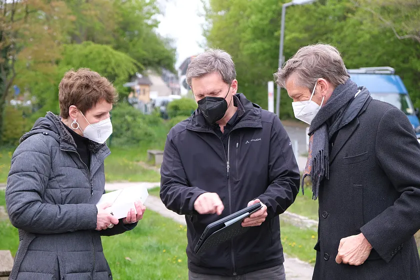 Wolfgang Bahlmann und Projektbeteiligte von KiTa Bremen begleiteten den Auftakt zur Glasfaserverlegung im KuFZ Osterhop. „Was hier passiert ist ein großer Schritt für KiTa Bremen. Nicht erst durch die Pandemie wird deutlich, wie wichtig der Ausbau der digitalen Infrastruktur für unsere Häuser ist.“, so Bahlmann. Frau Sabine Schlemo, Zentrumsleitung, freute sich zudem über das erste von rund hundert Tablets, die in den kommenden Wochen an alle KuFZ übergeben werden. Die Endgeräte sind eine weitere Maßnahme des Trägers zum digitalen Ausbau. Erfahren Sie mehr über die Tablets für Kinder- und Familienzentren.