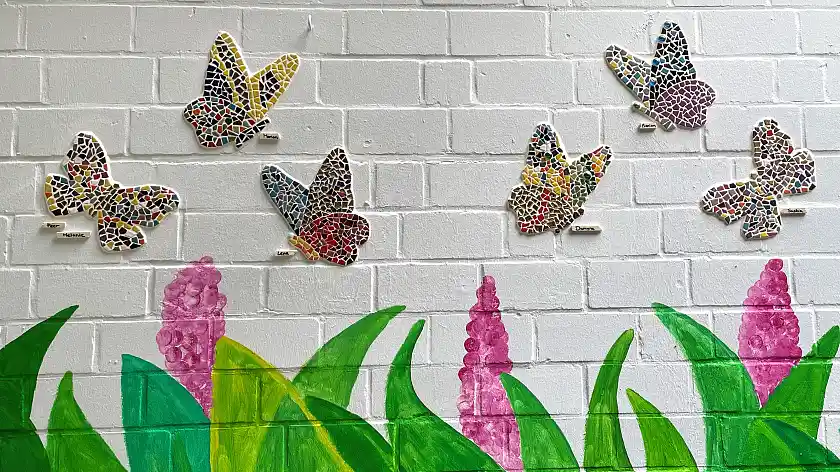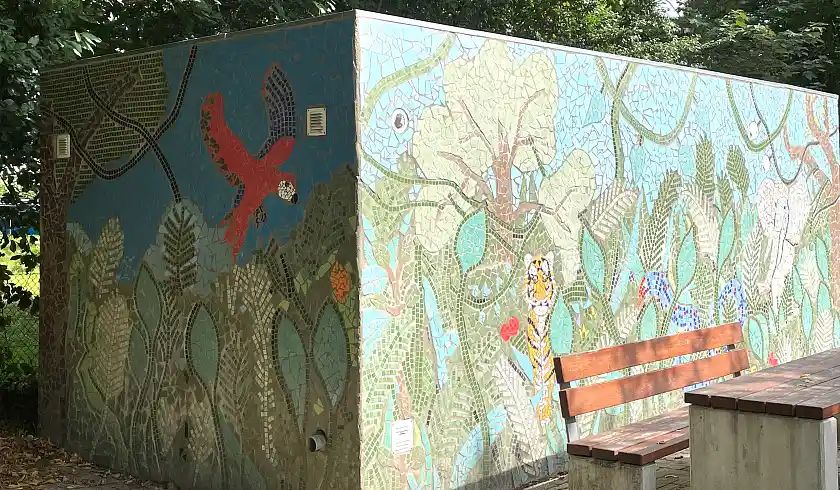 Die Sommerferien im Kamphofer Damm starteten mit einer BUND-Projektnaturwoche. Kinder erforschten, bastelten und spielten in der Natur rund um den Spielplatz. Weiter ging es mit dem großen Mosaikprojekt „Dschungel“, bei dem Kinder mit Künstlerinnen und Künstlern gemeinsam die Garagenwände des Hauses verzierten. Zum Ende der Ferien verschönerten Kinder und Eltern zusammen die Außenwände des Spielhauses.