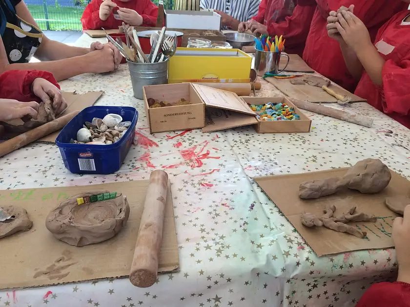 Kreativ ging es in den Ferien im Spielhaus/Treff Pürschweg zu: Kinder arbeiteten mit Ton und stellten eigene Regenmacher her. Bei dem Ausflug zur Bahrsplate eroberten Kinder die Skaterbahn.