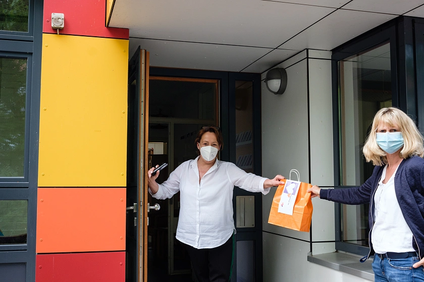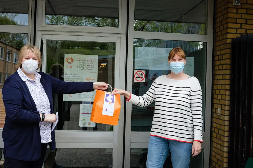 2020 musste KiTa Bremen pandemiebedingt den Aktionstag ausfallen lassen. Damit die Grußkarten in diesem Jahr ihren Weg in die Einrichtungen finden, erfolgt die Übergabe unter Einhaltung der geltenden Schutz- und Hygienevorgaben.
