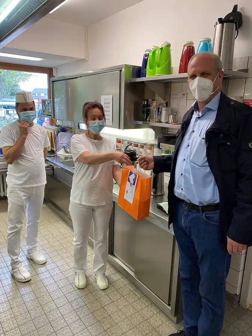 Wolfgang Bahlmann und Petra Zschüntzsch, Geschäftsführung von KiTa Bremen, sind zwei von insgesamt 21 Personen aus der Zentrale, die sich heute auf den Weg zu den Einrichtungen machen. „Unsere pädagogischen Fachkräfte, Küchen- und Raumpflegekräfte sowie die persönlichen Assistenzen tragen tagtäglich dazu bei, Kindern die bestmöglichen Chancen zum Großwerden zu ermöglichen. Es ist Ihr Herzblut und Ihre fachliche Kompetenz, auf die Familien tagtäglich bauen dürfen. Dafür möchten wir Danke sagen.“, so Bahlmann. „Insbesondere freuen wir uns, den Kinder- und Familienzentren die kleine Aufmerksamkeit persönlich vorbei bringen zu dürfen. Seit Beginn der Pandemie vor einem Jahr und den damit verbundenen Besuchsbeschränkungen in unseren Einrichtungen sind die Austauschmöglichkeiten zwischen Zentrale und Einrichtungen eingeschränkt. KiTa Bremen nutzt den Aktionstag, um endlich wieder ins persönliche Gespräch zu kommen.“