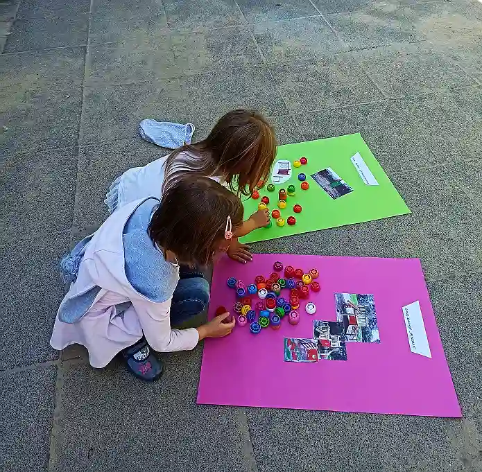 Die Idee zur Aufwertung der Außenspielanlage hatten die Kinder der lila und roten Kohorte während der Pandemiezeit 2020. Zu begrenzt und gepflastert empfanden die Jungen und Mädchen ihre bisherigen Spielmöglichkeiten auf dem Außengelände. Gemeinsam mit den Mitarbeitenden des Kinder- und Familienzentrums Flintacker überlegten sie, welche Funktionen ein neues Spielgerät haben sollte: Raum zum Klettern, Verstecken und Buddeln waren neben Blumen einige ihrer Wünsche.