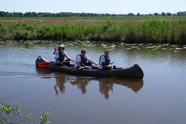 In das Kanu, fertig, los - hieß es am Samstag, den 03. Juni 2023. 46 gut gelaunte Mitarbeitende KiTa Bremens starteten pünktlich um 10.00 Uhr an der Kanu-Scheune Lilienthal, bei strahlendem Sonnenschein und blauem Himmel, in ein Wassersport-Abenteuer der besonderen Art. Aufregung und Vorfreude machten sich unter den angehenden Kanuten breit. Bis zu diesem Tag hatten die meisten noch nie in einem Kanu gesessen. Ganz nach dem Motto "Das habe ich noch nie vorher versuch, also bin ich völlig sicher, dass ich es schaffe." stiegen alle hoch motiviert in Ihre Boote. Nach kurzer Zeit waren 13 KiTa Bremen Boote auf dem Wasser unterwegs. Die Strecke sollte sie über die Wümme, den Kuhgraben, die kleine Wümme und den Torfkanal zum Findorffhafen führen. Eine Tour von vier Stunden war geplant. Nach der Hälfte der Strecke hieß es für eine kleine Stärkung "Land in Sicht". Auch wenn das Land natürlich immer in Sichtweite war, fühlten sich die ersten Schritte auf festem Boden ein wenig wackelig an. Beim Platzhirschen angekommen wurde sich ausgeruht, gelacht und für die zweite Hälfte der Strecke gestärkt. Einige suchten sich einen schönen Platz am Wasser - andere ließen sich im Restaurant bekochen. Am Ende saßen wieder 46 Neu-Kanuten in ihren Booten und freuten sich auf den weiteren Verlauf der Strecke. Die Tour führte alle Teilnehmenden durch Natur, idyllische Landstriche und sorgte für einen spannenden Perspektivwechsel. Wie anders die Welt um einen herum vom Wasser her betrachtet plötzlich aussieht. Es wurden Fotos gemacht, kleine inoffizielle Rennen gefahren und in entspannter Atmosphäre die Sonne genossen. Im Findorffhafen angekommen waren alle stolz und glücklich über dieses schöne Gemeinschaftserlebnis.