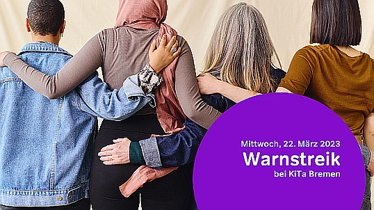 16.03.2023 - Die Gewerkschaft ver.di ruft die Beschäftigten von KiTa Bremen im Zusammenhang mit den Verhandlungen über den Tarifvertrag im Öffentlichen Dienst für Mittwoch, den 22. März 2023 zu einem ganztägigen Warnstreik auf.