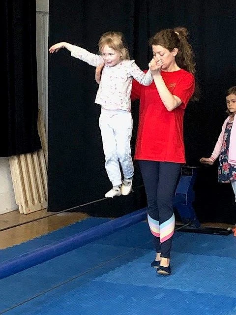Nach der "Aufwärmübung", der Mitmachgeschichte, wurden die Kinder selbst zu echten Akrobat:innen. Sie balancierten auf einem Seil und auf einer großen Kugel. Sie jonglierten mit Tüchern und Tellern. Ein buntes Zirkustreiben mit lautem Lachen und viel Bewegung prägten den Nachmittag. Am Ende des Tages nahmend die teilnehmenden Familien stolz ihre zehn frisch gebackenen, glücklichen, kleinen Zirkus-Kinder mit nach Hause, wo sicher noch am ein oder anderen Abendbrottisch über das tolle Zirkuserlebnis gesprochen wurde.