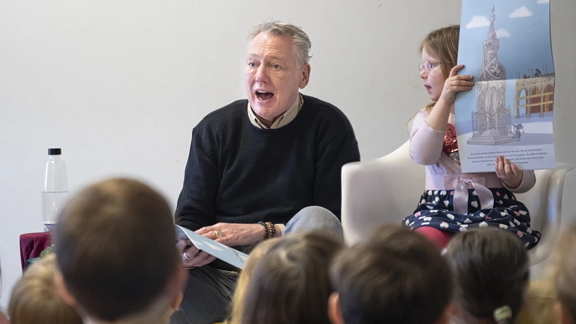 10.01.2024 - Im Dezember 2023 erhielten die Kinder des Kinder- und Familienzentrums Berckstaße Besuch von dem Schriftsteller Dirk Böhling und er Illustratorin Ina Clements. Mit im Gepäck hatten sie das Buch „Schlüsselkinder“. Beim Vorlesen des Buches lauschten die Kindergartenkinder der Geschichte rund um die Entstehung des Bremer Stadtwappens und erführen, was es mit dem Schlüssel auf sich hat. Auf kindgerechte Weise vermittelte die Veranstaltung so die Bremer Stadtgeschichte. Während der Lesung stellte sich heraus, dass aus Sicht der Kinder, der Bremer Schlüssel auch violett oder pink hätte sein dürfen.