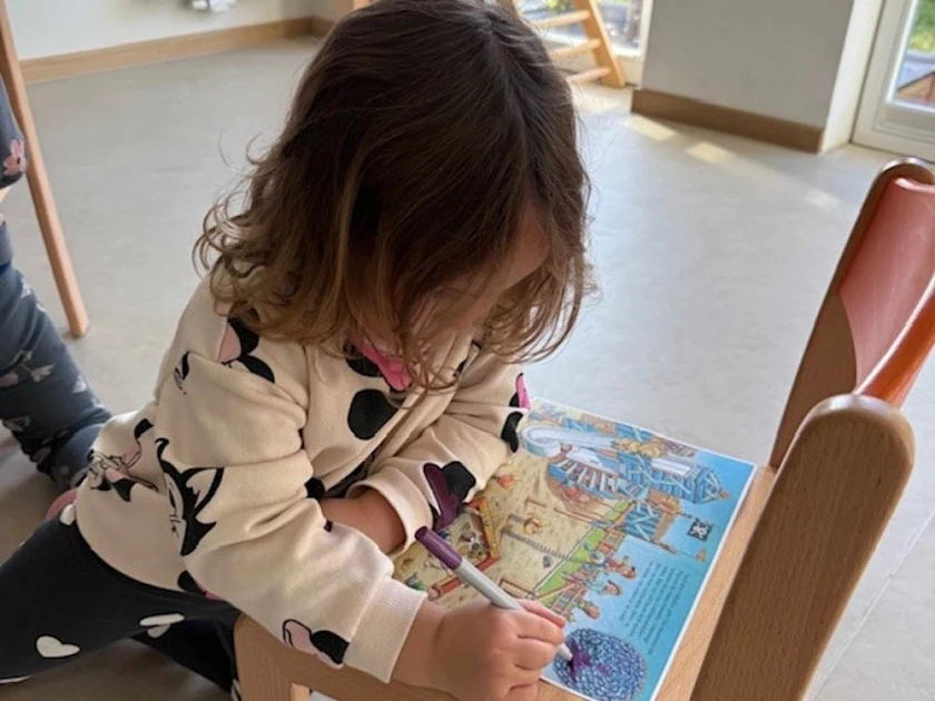 Besonders schön: Jedes Kind durfte sein Lieblingsbuch mitbringen oder aus der hauseigenen Bücherei auswählen – so wurde Lesefreude individuell erlebbar. Ein weiteres Highlight war die Mitmach-Aktion zum Buch „Hier stimmt doch was nicht!“, bei der gemeinsam mit den Kindern nach kleinen Fehlern gesucht wurde. Auch das Leitungsteam nahm sich Zeit, um mit dem Buch ins Geschehen einzutauchen und gemeinsam mit den Kindern nach kleinen Alltagsfehlern zu suchen, die beispielsweise in einer Küche nichts verloren haben.