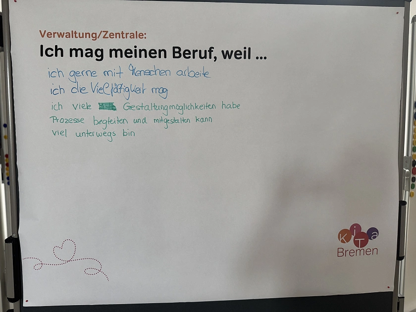 Zudem stellte sich die Interessenvertretung von KiTa Bremen vor und zeigte Möglichkeiten zur aktiven Mitbestimmung und Mitgestaltung innerhalb des Betriebs auf – ein wichtiger Baustein für eine lebendige und partizipative Arbeitskultur.