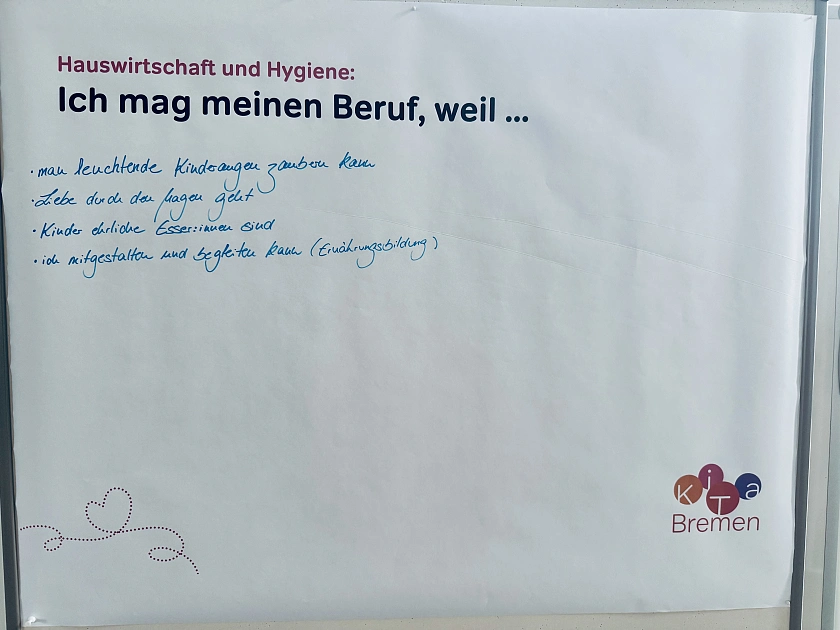 In einer interaktiven Pause bei Kaffee und Kuchen wurde es persönlich: Auf Stellwänden sammelten die Teilnehmenden, was ihnen an ihrem Beruf besonders Freude bereitet. Aussagen wie „Ich mag meinen Beruf, weil ich jedes Kind in seinem Tempo begleiten, fordern und fördern kann – die Entwicklung sehen und erleben darf“ zeigten eindrucksvoll, wie viel Leidenschaft und Engagement in den Teams stecken.