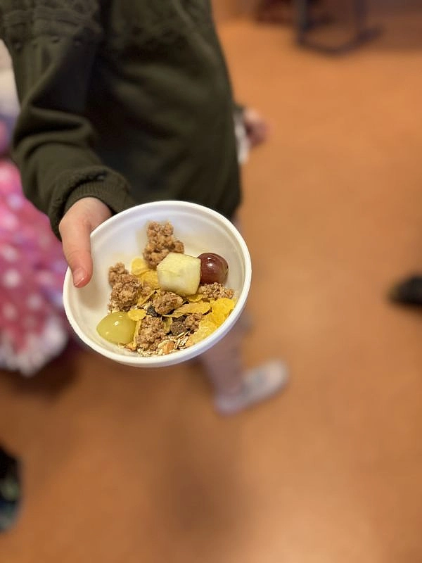 Morgens stehen die ersten Kinder schon voller Vorfreude an der Tür und warten darauf, beim Frühstück mithelfen zu dürfen. Am Vortag werden sie gezielt aus den Gruppen eingeladen – eine besondere Aufgabe, die sie ernst nehmen und mit Begeisterung erfüllen. Ab 7:30 Uhr startet Erzieher Deniz Wrieden gemeinsam mit den Kindern: Schürzen werden angezogen, Schneidebretter und Messer ausgelegt. Obst waschen, klein schneiden, Müsli und Nüsse in Schalen füllen – die Kinder sind bei jedem Schritt aktiv beteiligt.