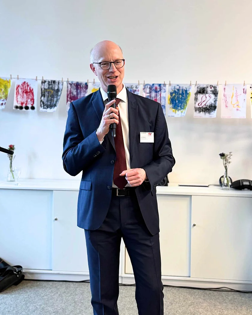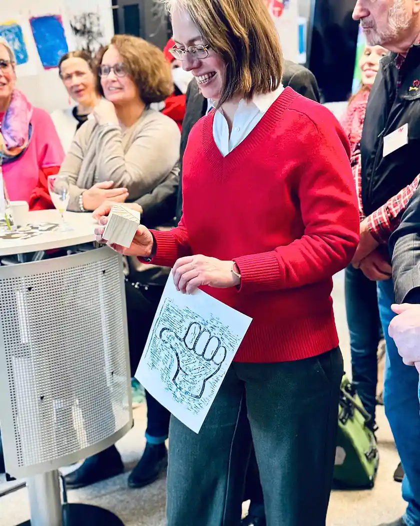 14. Februar 2025 – Holz, Farbe und Papier sind die Grundgestaltungselemente des diesjährigen Kinderkunstprojekts von KiTa Bremen. Gemeinsam mit der Kunsthalle Bremen näherten sich Kinder aus acht Kinder- und Familienzentren der künstlerischen Holzschnitt-Technik. In Auseinandersetzung mit Kunstwerken der aktuellen Sonderausstellung „Kirchner Holzschnitte“ und im anschließendem kreativen Arbeiten setzten sich Kinder und pädagogische Fachkräfte mit unterschiedlichen Drucktechniken auseinander. Die entstandenen Kunstwerke präsentiert KiTa Bremen Mitte Februar Mitarbeitenden, Kooperationsbeteiligte und politischen Vertreter:innen im Rahmen des alljährlichen Neujahrsempfangs in der Zentrale des Trägers.