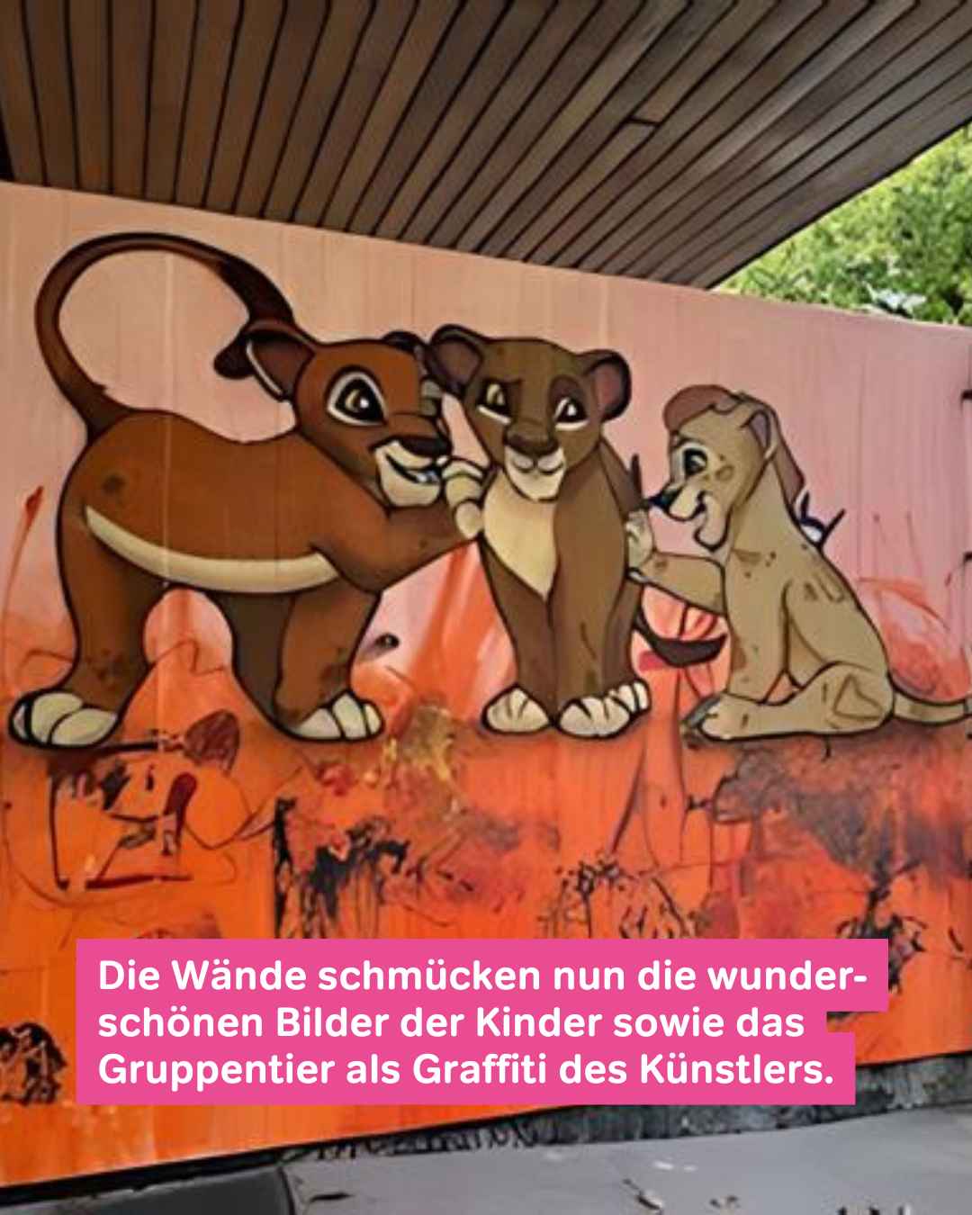 Die Wände schmücken nun die wunderschönen Bilder der Kinder sowie das Gruppentier als Graffiti des Künstlers. - Datei öffen/herunterladen (jpg, 101.0 KB)