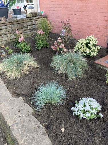 Neu bepflanztes Hochbeet