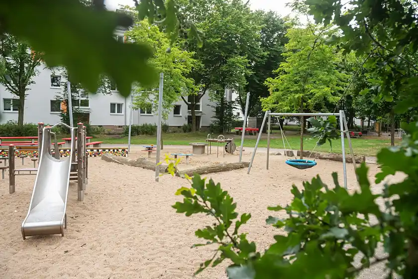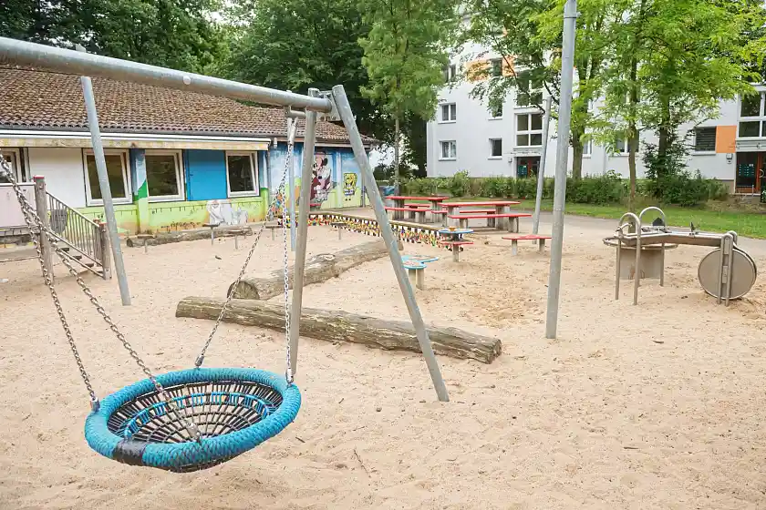 Auf dem Außengelände befinden sich Spielmöglichkeiten für die kleinen und großen Kinder: