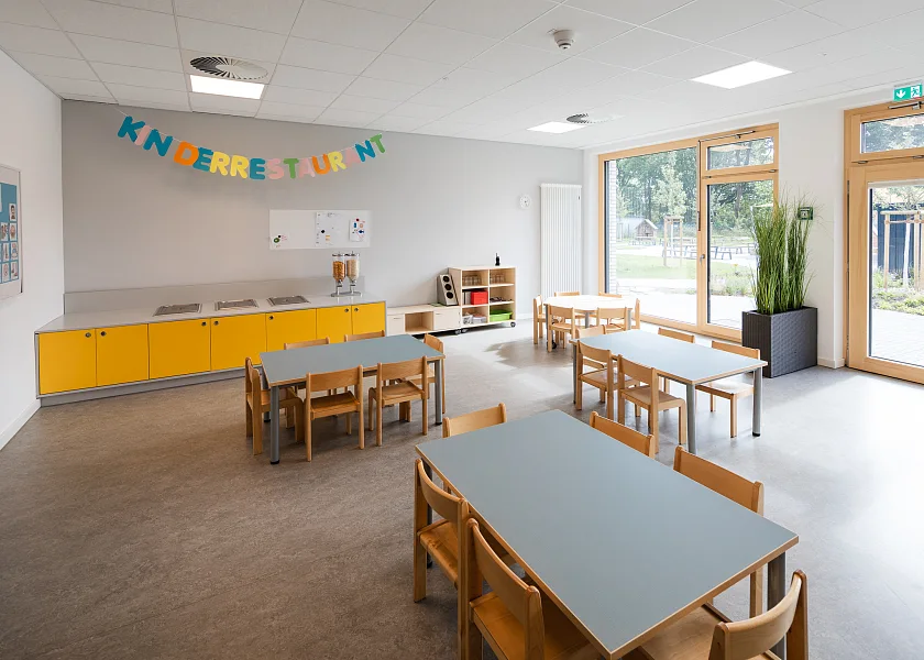In unserer hauseigenen Küche werden täglich frische Mahlzeiten zubereitet. Die Grundlage bildet das Verpflegungskonzept von KiTa Bremen „Essen und Trinken als Qualitätsmerkmal“. Bei der Auswahl der Lebensmittel legen wir Wert auf einen biologischen Anteil. Hier bevorzugen wir saisonale und regionale Angebote. Täglich wird den Kindern ein leckeres und gesundes Frühstück und Mittagessen angeboten. Wir verstehen auch das Restaurant als Lernort für die Kinder, wobei sie von den Fachkräften unterstützt werden.