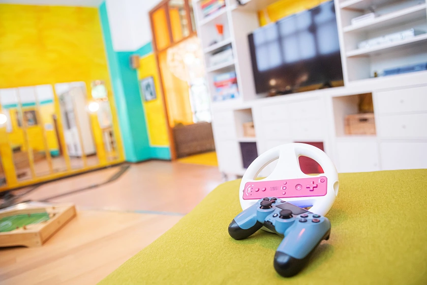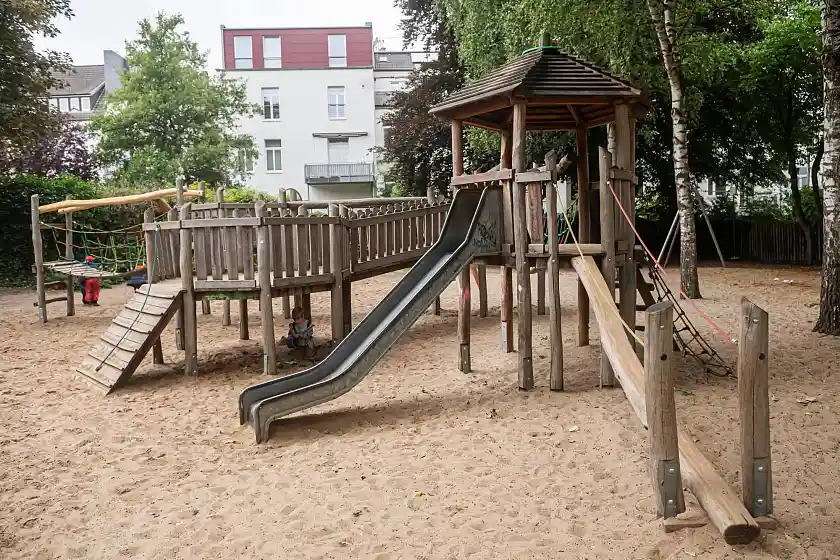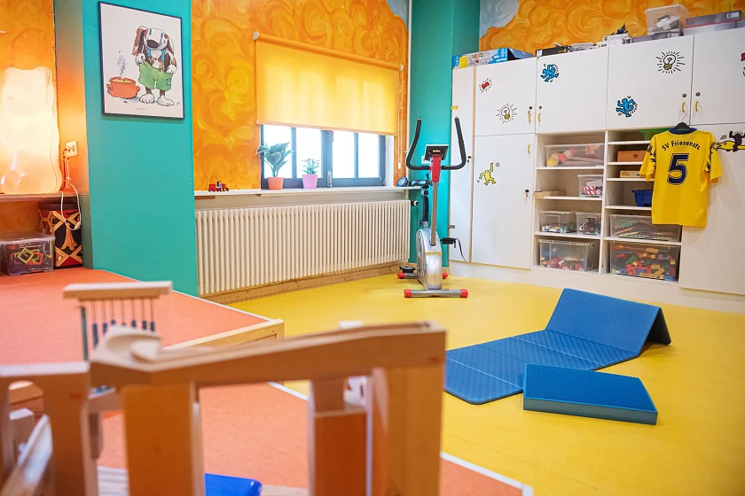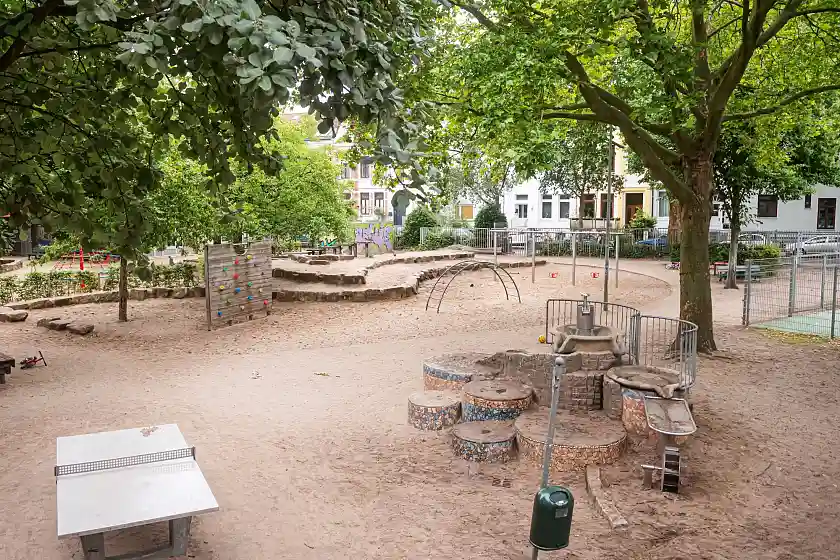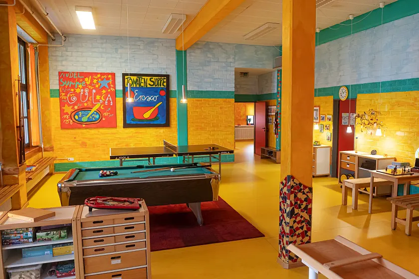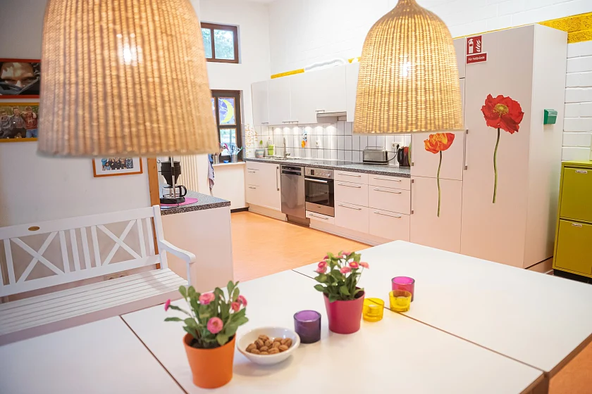 Die Einrichtung umfasst 270 qm und bietet neben einer Kunst- und Holzwerkstatt, eine große Küche sowie mehrere Aufenthaltsräume, die je nach Bedarf genutzt und auch verändert werden können. Ein schöner Garten mit Terrasse und Grillmöglichkeiten erweitert das Angebot. Der sich anschließende 5000 qm große öffentliche Spielplatz bietet neben den Kinderspielbereichen ein Wasserspiel, eine Basketballfläche sowie einen Fußballplatz.