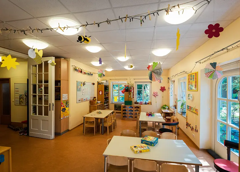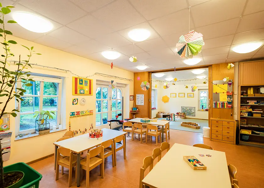 Unser Kinder- und Familienzentrum ist montags bis freitags von 8 bis 16 Uhr geöffnet und bietet 48 Plätze für Kinder von 3 Jahren bis zum Schuleintritt (Kindergarten).