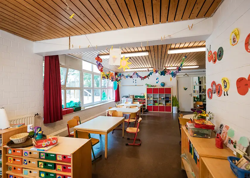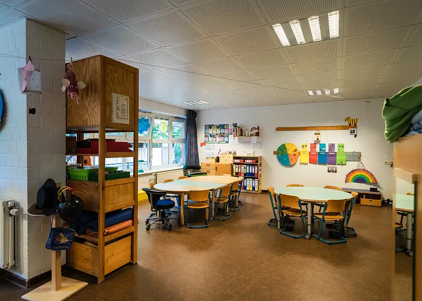 Die Tagesstruktur ist so angelegt, dass jedem Kind die Möglichkeit offen steht, sich nach Interessen und Neigungen in den verschiedenen Schwerpunkträumen zu betätigen, sich differenzierten Angeboten zuzuordnen oder sich im vertrauten Gruppenbereich zu beschäftigen.