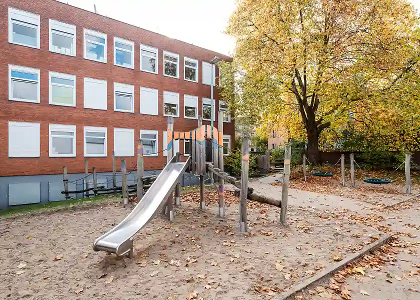 Umgeben von unserer weitläufigen Grün– und Gartenanlage befindet sich das Kinder- und Familienzentrum Julius-Leber-Straße in Bremens jüngstem Stadtteil Vahr. In unmittelbarer Nähe befindet sich auch der Carl-Goerdeler-Park sowie das Einkaufszentrum Berliner Freiheit. Vom Stadtzentrum bis zur Einrichtung sind es mit öffentlichen Verkehrsmitteln ungefähr 20 Minuten.