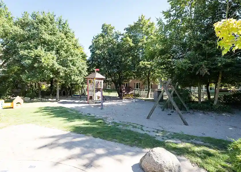 Im Elementarbereich arbeiten wir in „teil-offenen“ Gruppen. Die Räume im Elementarbereich sind konzeptbezogen gestaltet: Kinder können eine Bewegungshalle, eine Bücherei und einen Kreativ-, Werk-, Bau-, Rollenspiel- sowie Sensomotorikraum nutzen. Im Kinderrestaurant essen wir gemeinsam.